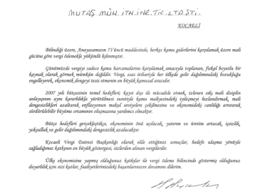 Güçlü Ülke, güçlü ekonomi ve güçlü şirket ancak düzenli ve yüksek vergi bilinciyle oluşacağına inancımız tamdır.